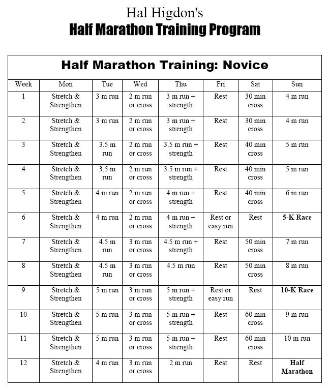 10 K Training Program 10-K Training: Novice Week Mon Tue Wed Thu Fri Sat Sun 1 Stretch & Strengthen 2.5 m run 30 min cross 2 m run + strength Rest 40 min cross 8 Stretch & Strengthen 3 m run 30 min cross 2 m run Rest Rest 10-K Race. Created Date: ... Fetch Full Source