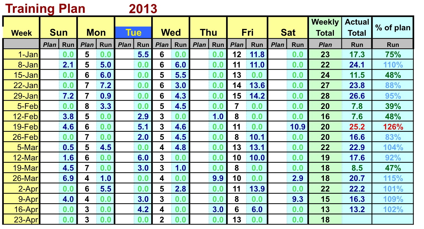Half Manual Marathon Training Program For Beginners 20 Weeks ...